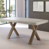 Tavolo moderno da cm 140 allungabile fino a cm 220 tramite 2 allunghe riposte sotto il piano. La bellezza del tavolo design Komel emerge nel piano con finitura pietra bianca, la soluzione perfetta per chi cerca il marmo bianco con la praticità del legno. Non solo, la scelta delle gambe colore visone rappresenta l’accostamento ideale per racchiudere raffinatezza ed eleganza.