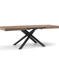 Disponibile da cm 140, Komel presenta 2 allunghe da cm 40 riposte sotto il piano e pronte all’uso.