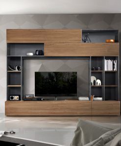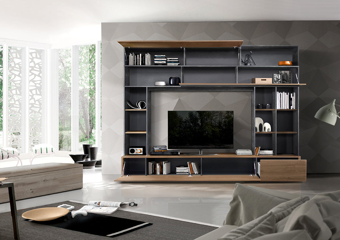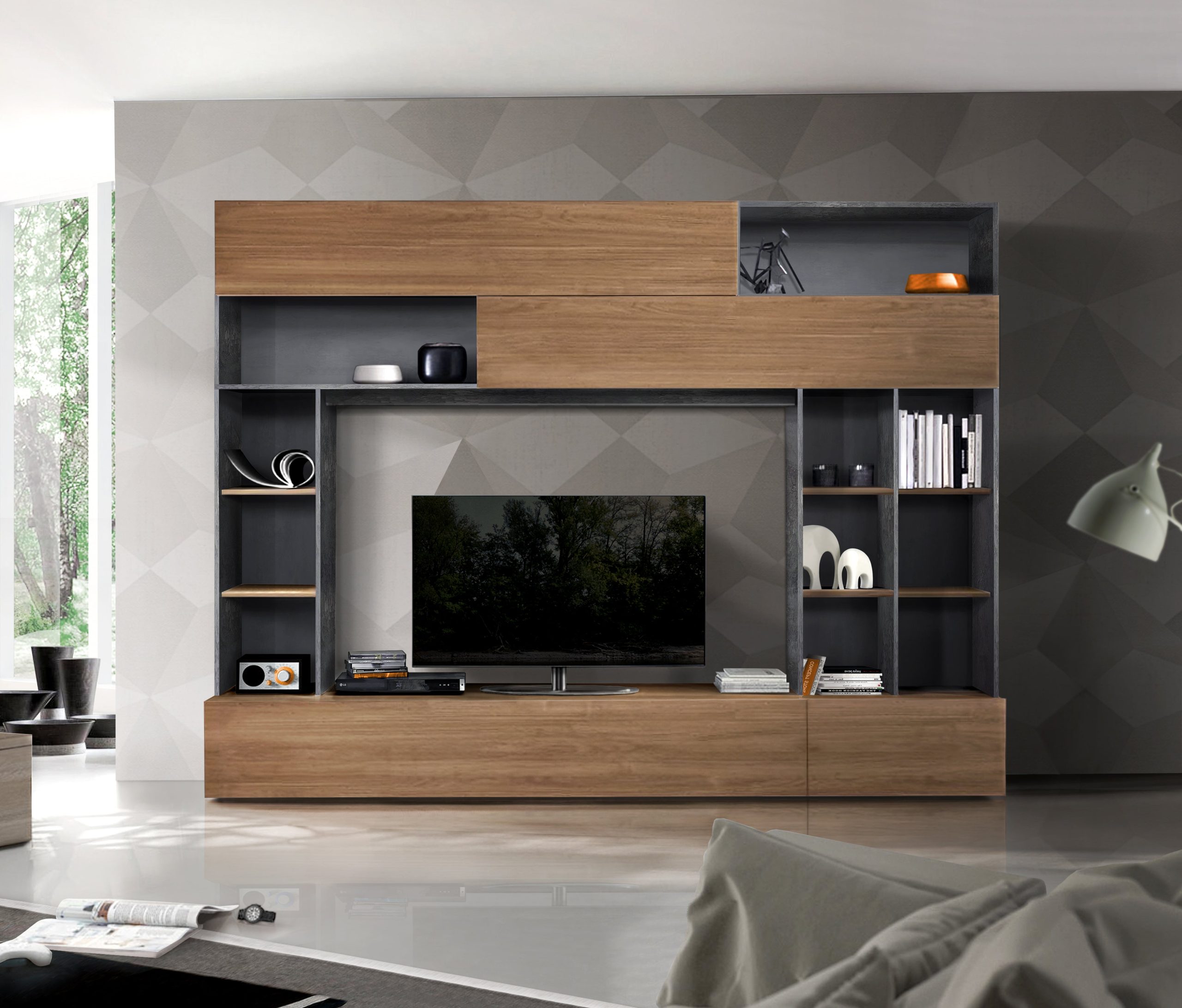 Korvier – Soggiorno a parete design moderno in legno con vani e pensili