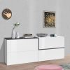 Mobile credenza in legno colore bianco lucido, con 3 ante e bordino nella colorazione pero o ossido. Perfetta per arredare il tuo soggiorno o sala pranzo, il mobile dona un look moderno alla casa, per un ambiente accogliente ed elegante.