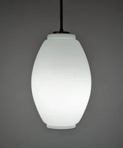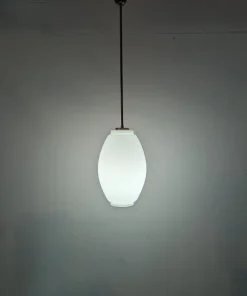 Lampada a sospensione in ottone e vetro opalino anni 60