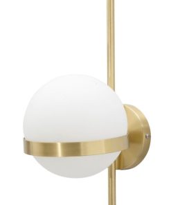 Applique da parete con una luce, un’altra idea per illuminare ed arredare la vostra casa moderna con stile essenziale ma elegante. Questa lampada da parete è formata da semplice asta in metallo dorato con anello che sorregge il paralume costituito da semplice sfera in vetro bianco.