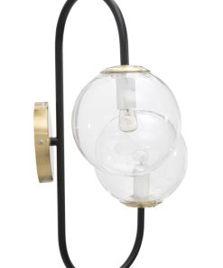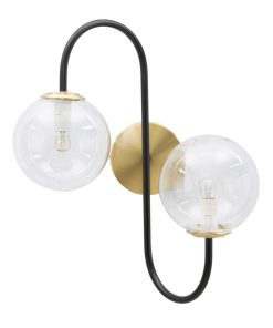 Applique due luci da parete, dallo stile sobrio e perfettamente adattabile nei contesti più svariati. Questa piacevole lampada da parete si compone di 2 paralumi a sfera in vetro trasparente con due sottili bracci in metallo nero. Da notare la presenza del colore oro che rende la lampada abbinabile con i tanti complementi e mobili in metallo dorato.