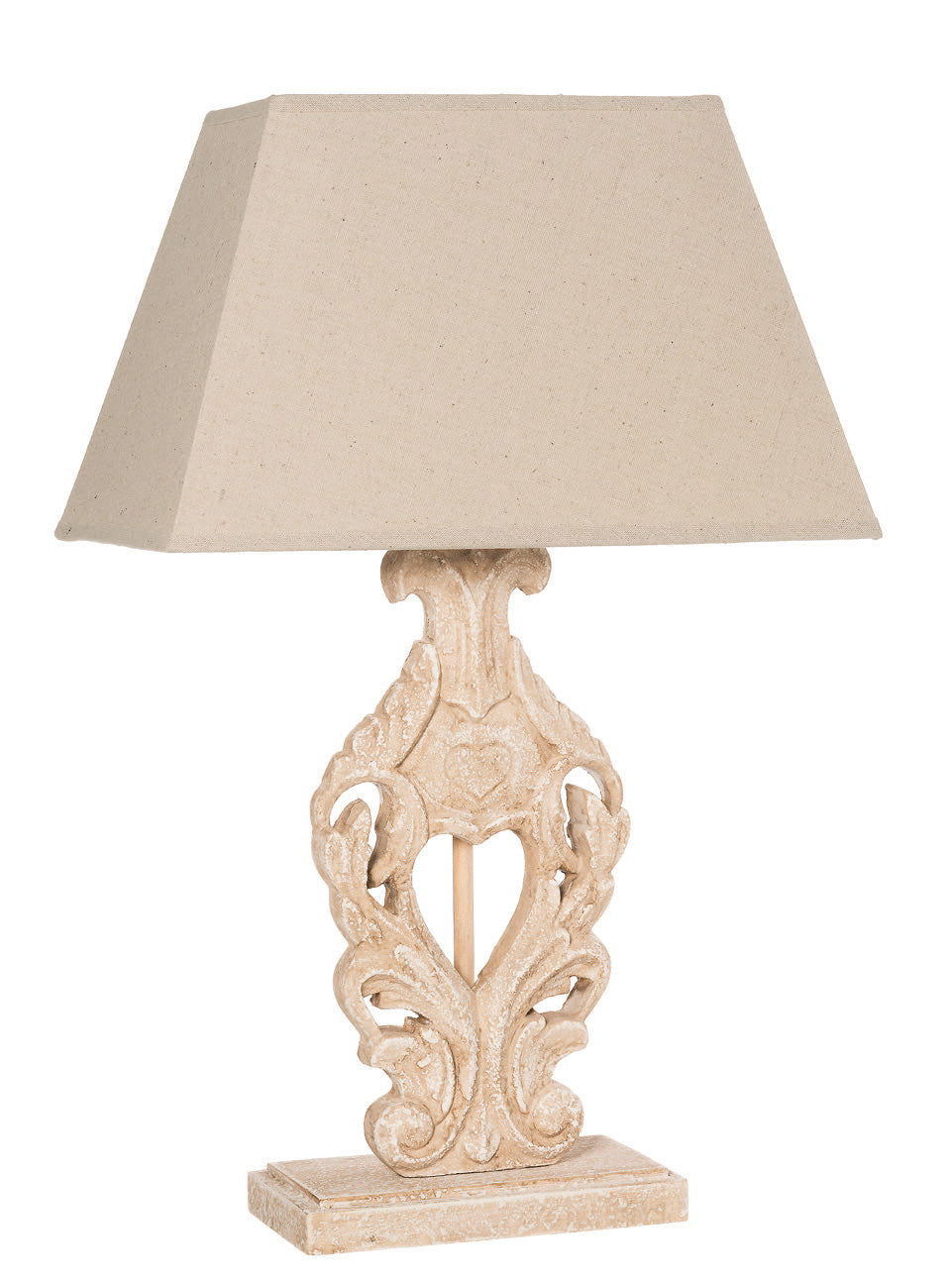 Lampada da salotto shabby in legno con cappello rettangolare cm 35x20x52h