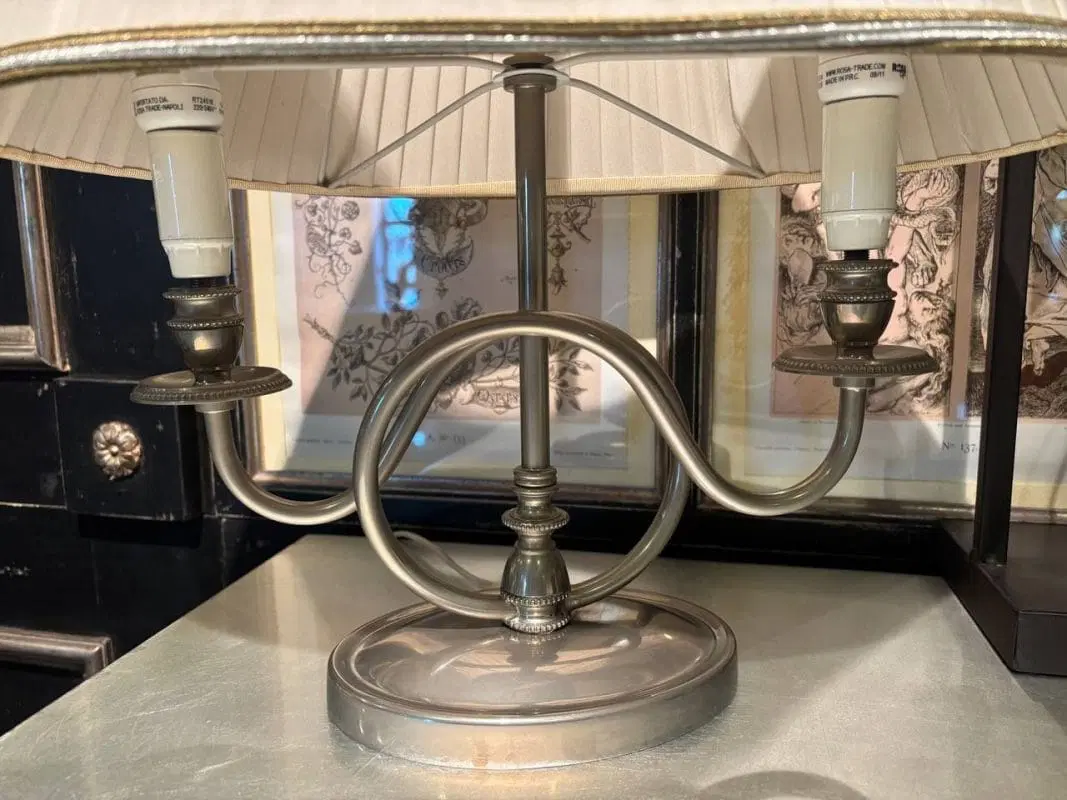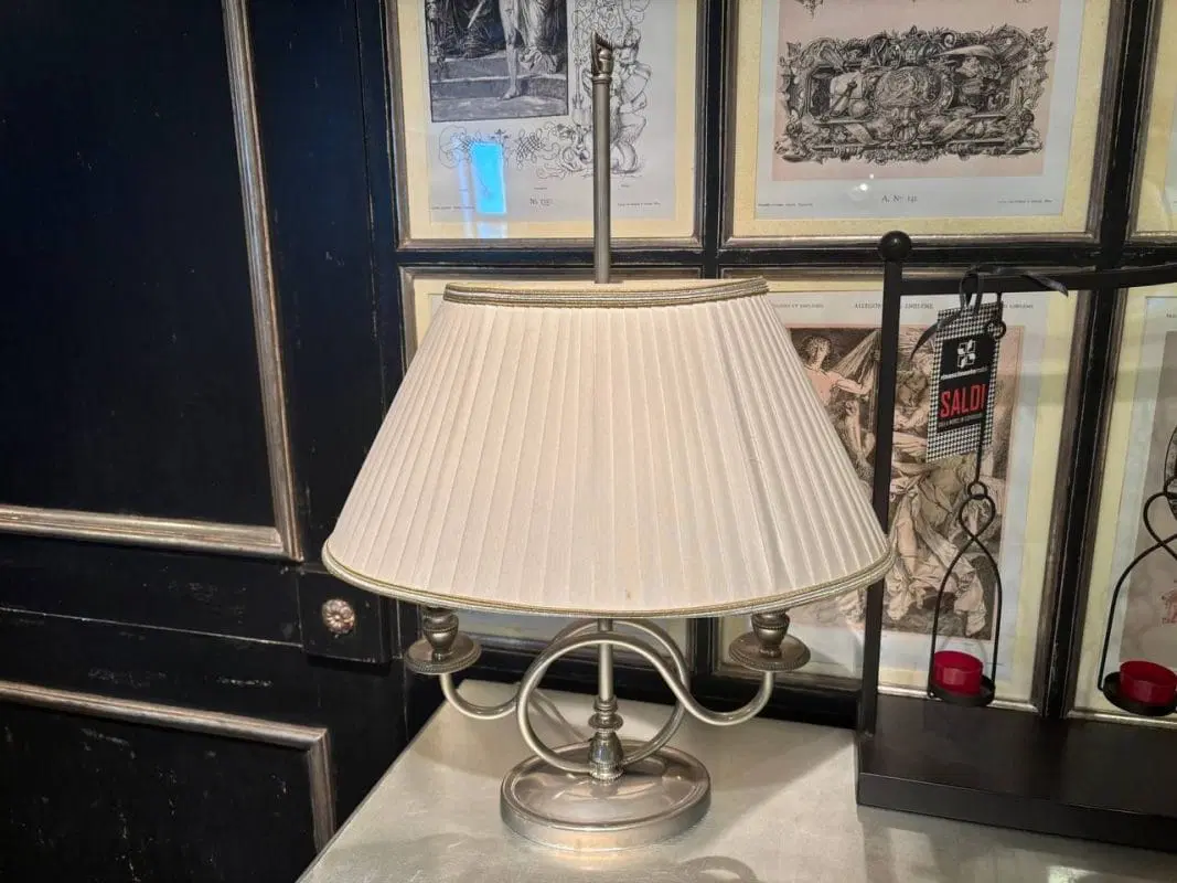 Lampada classica Aliotti in tessuto. Struttura colore argento.