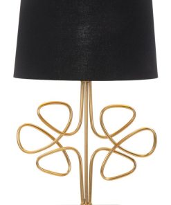 Lampada da tavolo design in metallo colore oro e cappello in tessuto nero cm Ø 39x65h