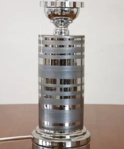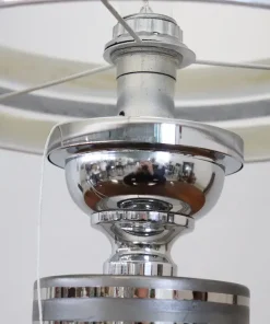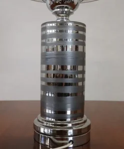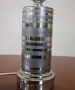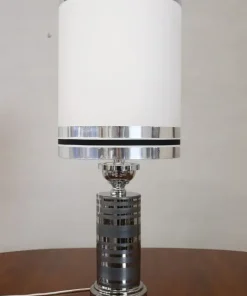 Vi presentiamo una splendida lampada da tavolo vintage italiana, realizzata negli anni Settanta. Questo squisito pezzo presenta un corpo in ceramica ornato da un elegante smalto color argento, perfettamente abbinato a un’elegante base in metallo cromato e a una sezione terminale alta in metallo cromato. Il paralume alto della lampada, realizzato in tessuto e arricchito da bande cromate, completa perfettamente il design complessivo. Pur non essendoci marchi o firme visibili, la lampada assomiglia molto alle creazioni di Bitossi, rinomata manifattura italiana di ceramiche conosciuta per la sua maestria artistica fin dal 1871. La lampada è in ottime condizioni, avendo subito un ricablaggio per aggiornare l’impianto elettrico, e il tessuto del paralume è stato sostituito con materiale di alta qualità che rispecchia il design originale. con il suo design futuristico, questa lampada incarna l’armoniosa fusione di materiali tradizionali ed estetica innovativa, riflettendo l’arte funzionale che ha definito i migliori designer italiani degli anni Settanta. Non importa dove la posizionerete, questa lampada diventerà sicuramente un punto focale di grande impatto nel vostro spazio. Prezzo trattabile.