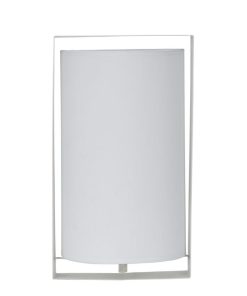 Particolare lampada design, dalla struttura alternativa alla classica lampada, infatti, si presenta come una struttura semplice rettangolare in metallo bianco. Dotata di paralume lineare in tessuto, disponibile in due colori: bianco o tortora.