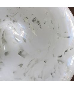 L’intera superficie è decorata con un motivo maculato bianco, che dona alla lampada una texture morbida e raffinata, capace di filtrare la luce in modo caldo e diffuso. L’estetica Space Age si ritrova nella forma organica e nella purezza delle linee, evocando atmosfere futuristiche e poetiche allo stesso tempo.
