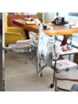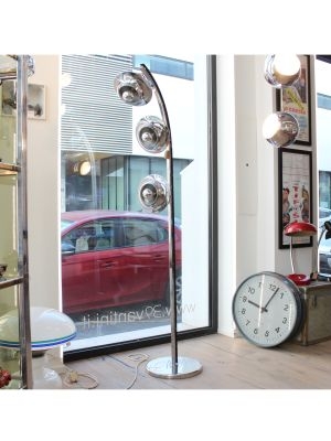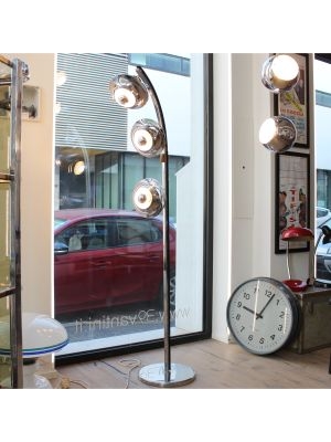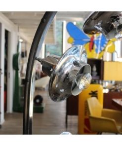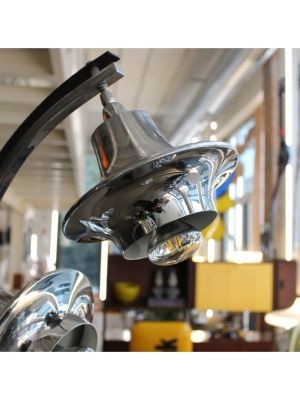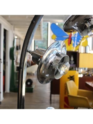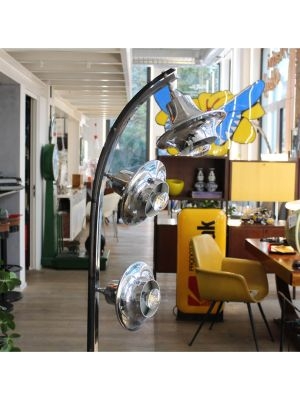 Modello: 3 luci regolabili / Produttore: OMA / Elegante lampada da terra realizzata in Italia negli anni 1970-1979 e prodotta da OMA, in pieno stile Space Age. La struttura, in acciaio cromato, è leggermente arcuata, conferendo slancio e dinamismo alla forma senza perdere equilibrio visivo.