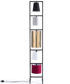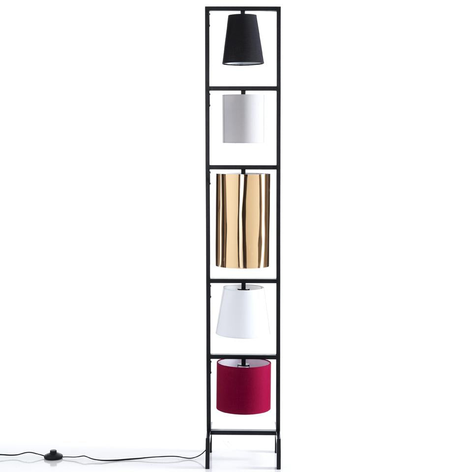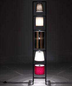 Lampada da terra moderna realizzata attraverso la costruzione di una struttura in metallo con verniciatura colore nero opaco e predisposizione per 5 lampadine con paralume in tessuto colorato e in acrilico con finitura color rame. La composizione si presenta con colori accesi che rendono l’ambiente vivo e luminoso e riescono ad esaltare il massimo di un genere moderno che orna e decora questa lampada. Si adatta ad ogni ambientazione sprigionando tutta la sua bellezza.