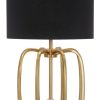 Fantastica lampada moderna utile per arricchire il salotto o camera a letto, facente parte di una serie di lampade da tavolo e da terra, caratterizzate dalla presenza del metallo dorato che compone la base e paralume in tessuto nero.
