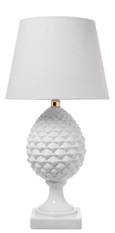 Bellissima lampada da salotto, elegante grazie al suo colore bianco, sulla base a “uovo di drago”. Col paralume in tessuto di colore bianco, questa lampada classica è perfettamente idonea per illuminare ambienti classici e moderni.