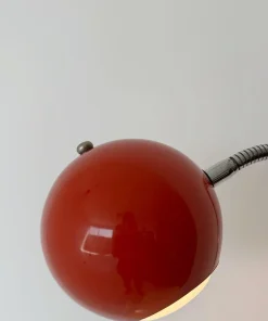 Lampada da tavolo morsetto,1970s, struttura in metallo cromato, lampada in metallo arancione ad occhio