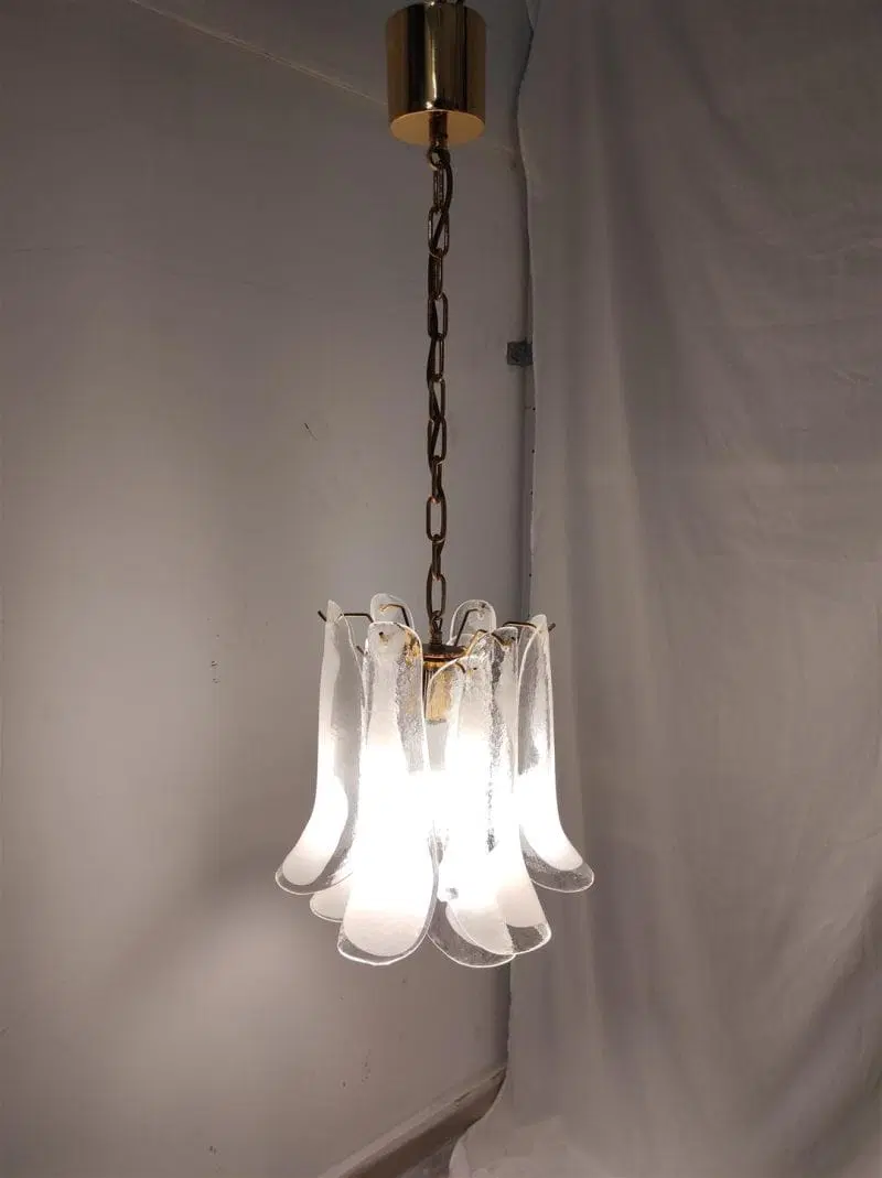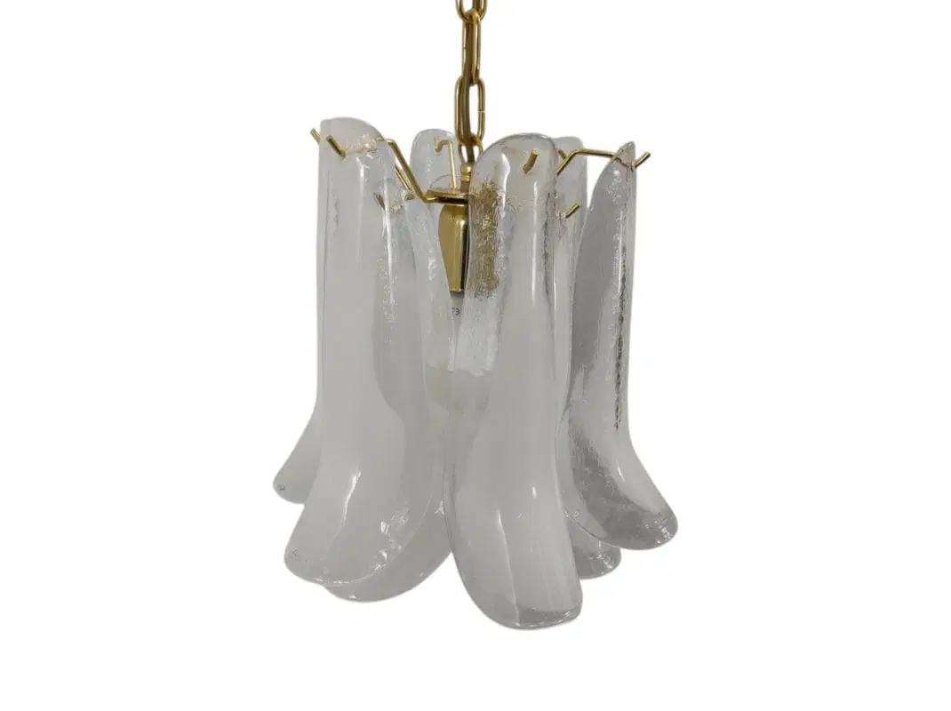 La lampada sospensione “Petali” è composta da elementi in vetro soffiato detti “Petali” per via della forma che ricorda il petalo di un fiore.