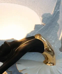 Lampada in vetro di Murano e scultura in porcellana Capodimonte, raffigurante ballerina con filo oro marchiata Carpiè sulla base.