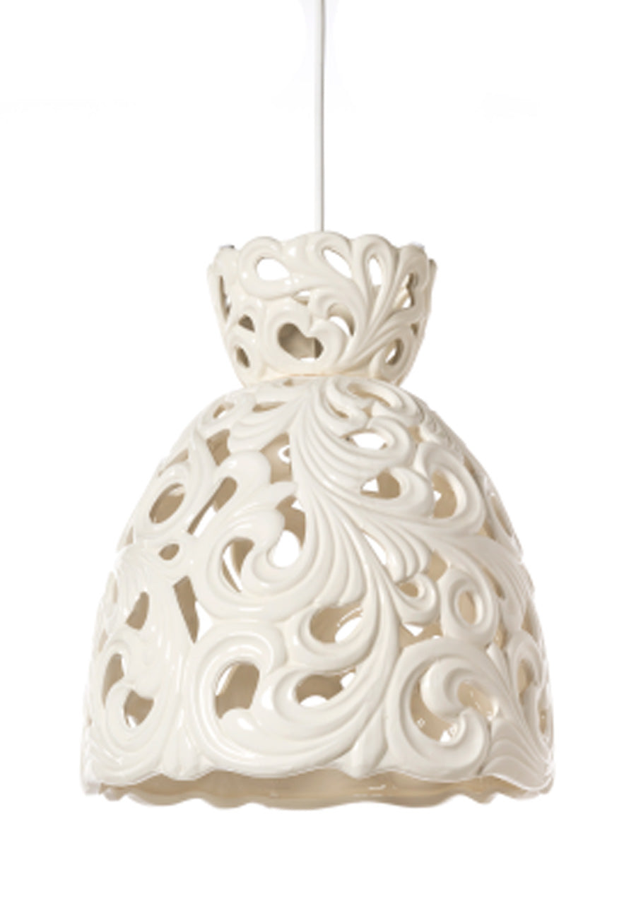 Lampadario a sospensione in ceramica decorata colore bianco – varie misure