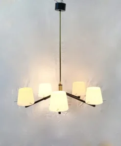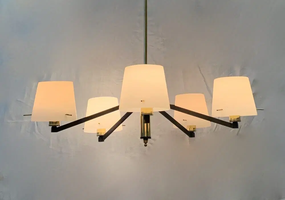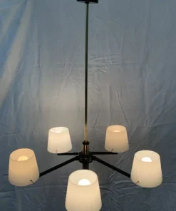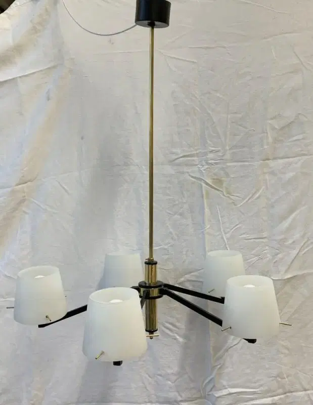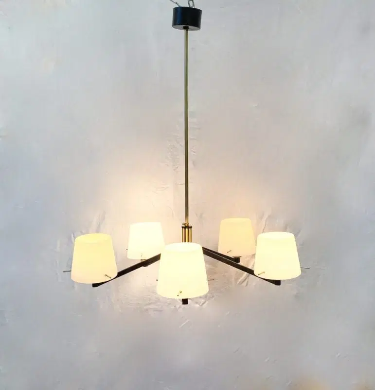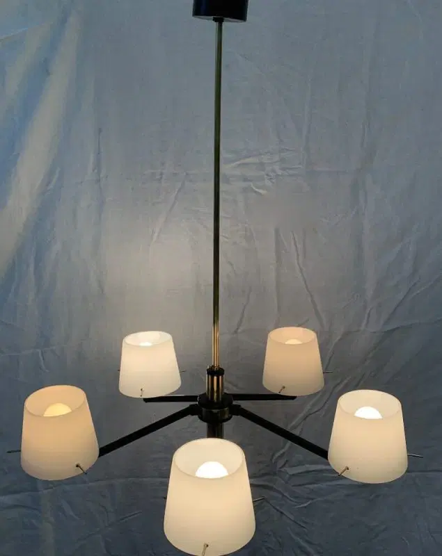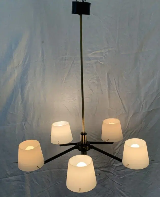 Bellissimo lampadario con 5 luci probabilmente lavorazione di Stilnovo.