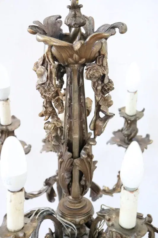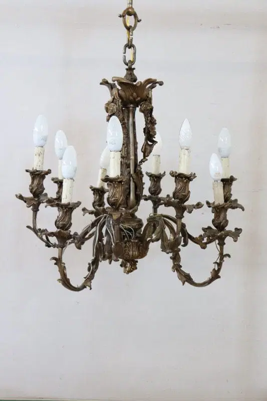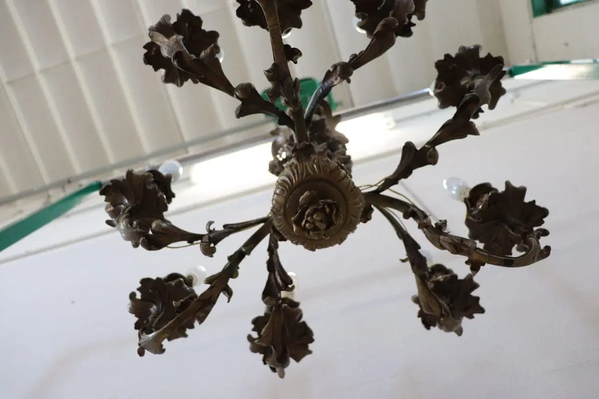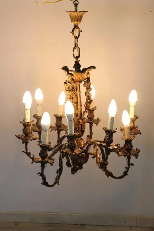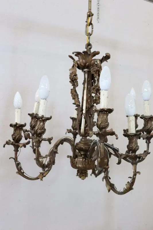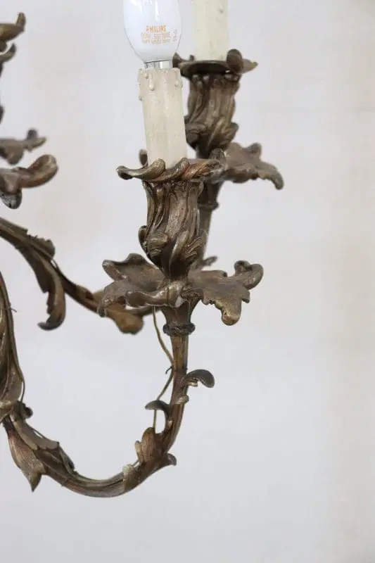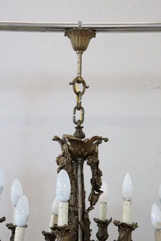 Bellissimo e raffinato lampadario antico primi anni del secolo XX completamente in bronzo caratterizzato da un raffinato lavoro di cesellatura. Il bronzo ha acquisito bella patina antica. Perfettamente funzionante dotato di 9 luci. Vi consigliamo comunque di guardare bene in dettaglio tutte le foto allegate. Proposto ad un’ottimo prezzo trattabile vi invitiamo ad inviarci le vostre proposte di acquisto le valuteremo con piacere.