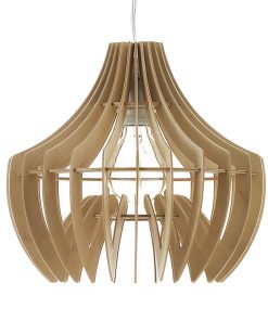Lampadario dal design moderno e indubbiamente originale, formato da elementi sagomati in legno naturale che creano tutta la struttura.