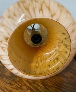 Lampadario campana a sospensione Murano anni 0 in vetro di Murano , bicolore salmone con macchie lattee. Perfetto stato . Una luce .