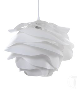 Lampadario a sospensione distinto da un singolare in paralume polipropilene bianco dal design astratto che apre la propria immaginazione, riconducendolo ad una nuvola o a una rosa. Bellissimo da solo, ancor meglio se accompagnato dalla piantana della stessa linea.