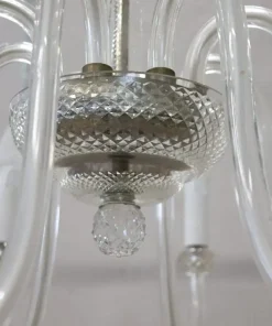 Lampadario vintage in vetro di Murano trasparente, anni ’80, Otto luci