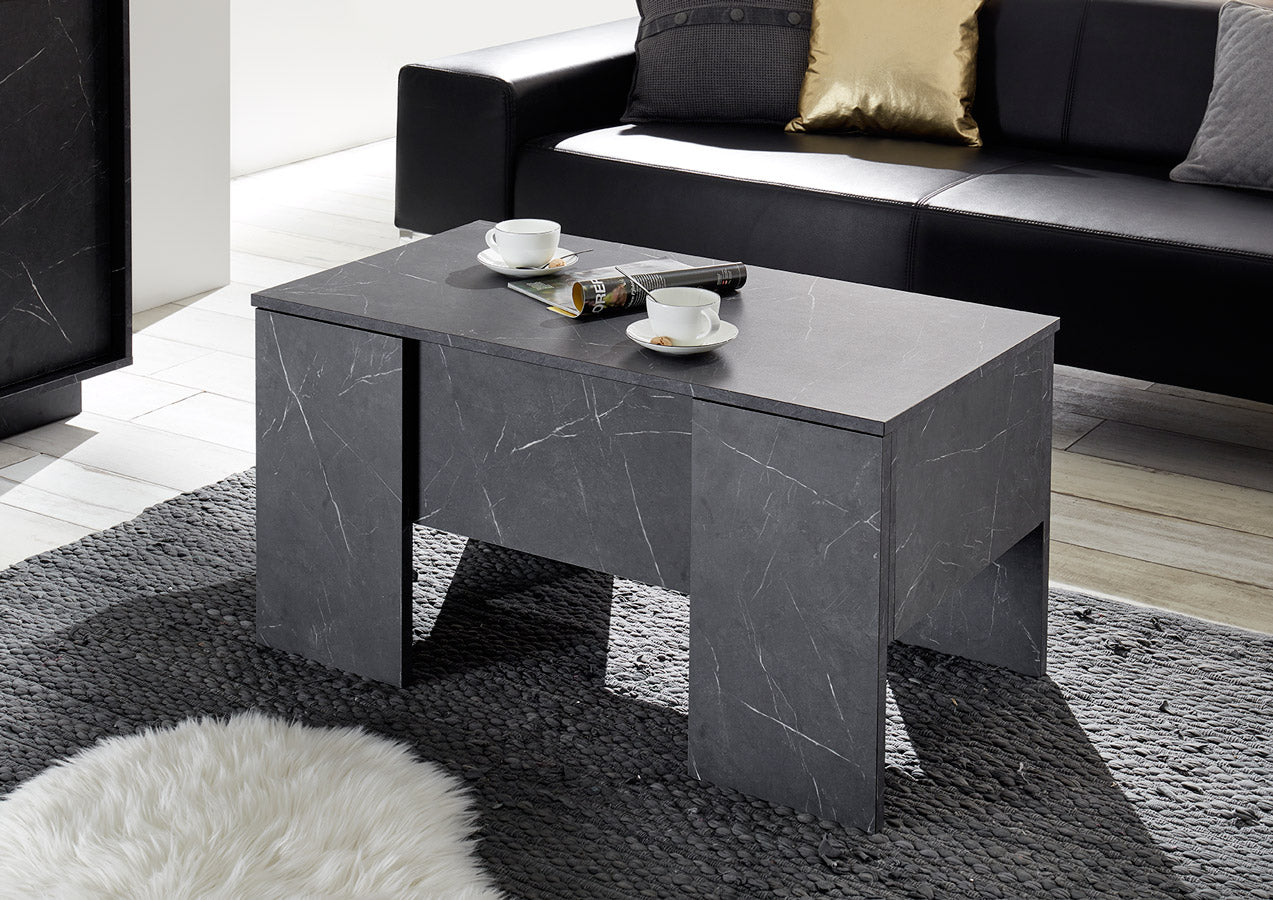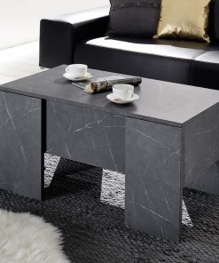 Adorabile tavolino basso da salotto Leonel realizzato in legno e distinto dalla particolare finitura effetto marmo nero. Dotato di piano alzabile, il tavolino da caffè Leonel nasconde un pratico contenitore dove potrai riporre riviste o qualsiasi oggetto. Leonel è ideato per accompagnare uno dei nostri mobili in questa finitura per completare l’arredamento del tuo salotto, ma sarà facile da abbinare anche con un divano o un arredamento dai colori scuri.