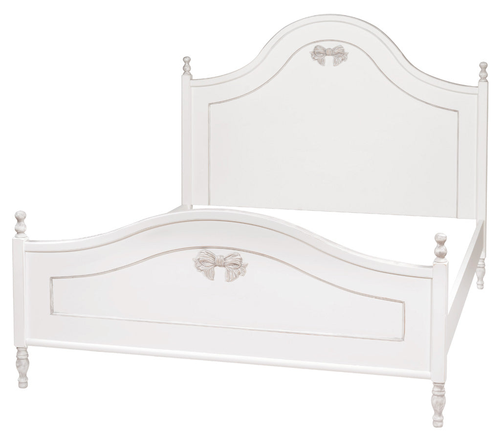 Letto matrimoniale in legno bianco classico shabby con fiocco cm 174x216x148h