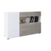 Libreria scaffale da parete e da posizionare a terra, realizzata con pannelli di legno finitura larice bianco poro aperto e cemento. La nostra libreria da salotto conquista per il design asimmetrico prodotto dall’alternanza di cubi chiusi e aperti.
