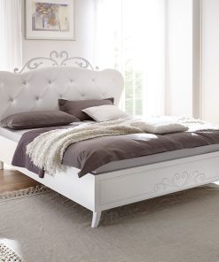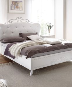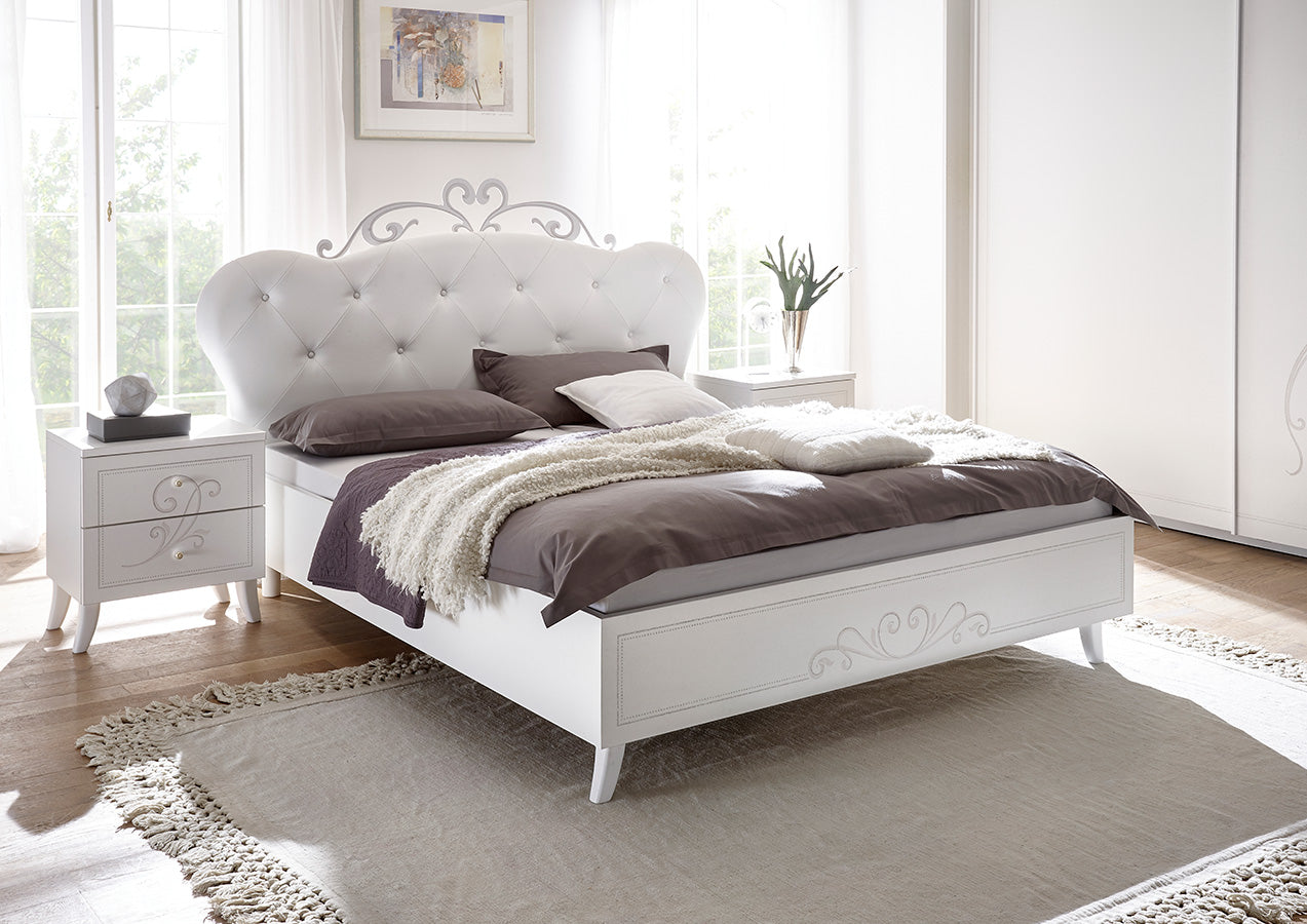 Il nostro letto design Lilium presenta una stupenda testiera dalla forma sagomata, imbottita e rivestita in ecopelle bianco con immancabile lavorazione capitonnè per poi culminare con un fregio in metallo che incorona questo lussureggiante letto.