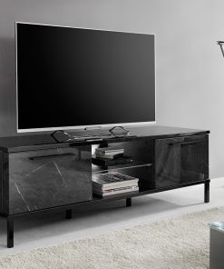 Lisburn – Set mobili salotto con porta tv vetrina e credenza finitura marmo nero lucido