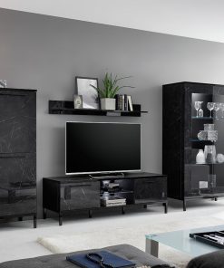 Lisburn – Set mobili salotto con porta tv vetrina e credenza finitura marmo nero lucido