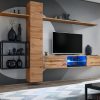 Loira presenta un pratico mobile sospeso porta tv con ripiano centrale in vetro illuminato da luci a led e un semplice pensile. Inoltre, la presenza dello scaffale in metallo rivela l’ispirazione industrial e minimalista dello stile in perfetta sintonia con una casa trendy e contemporanea.