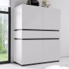 Madia 4 ante Lovy dal design moderno ed essenziale realizzata in legno bianco opaco con inserto e zoccolo colore rovere wengé oppure bianco. Oltre alla credenza moderna Lovy potrai scegliere di aggiungere uno dei mobili living della stessa linea e creare un ambiente distinto e originale.