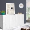 Mobile credenza realizzato in legno, nel colore a scelta tra ossido, bianco lucido o cemento. Il mobile si presenta con 2 ante e 1 ripiano interno, distintamente decorate da forme geometriche, un design eccezionale fuori dal comune, per chi ama un arredamento moderno e unico.