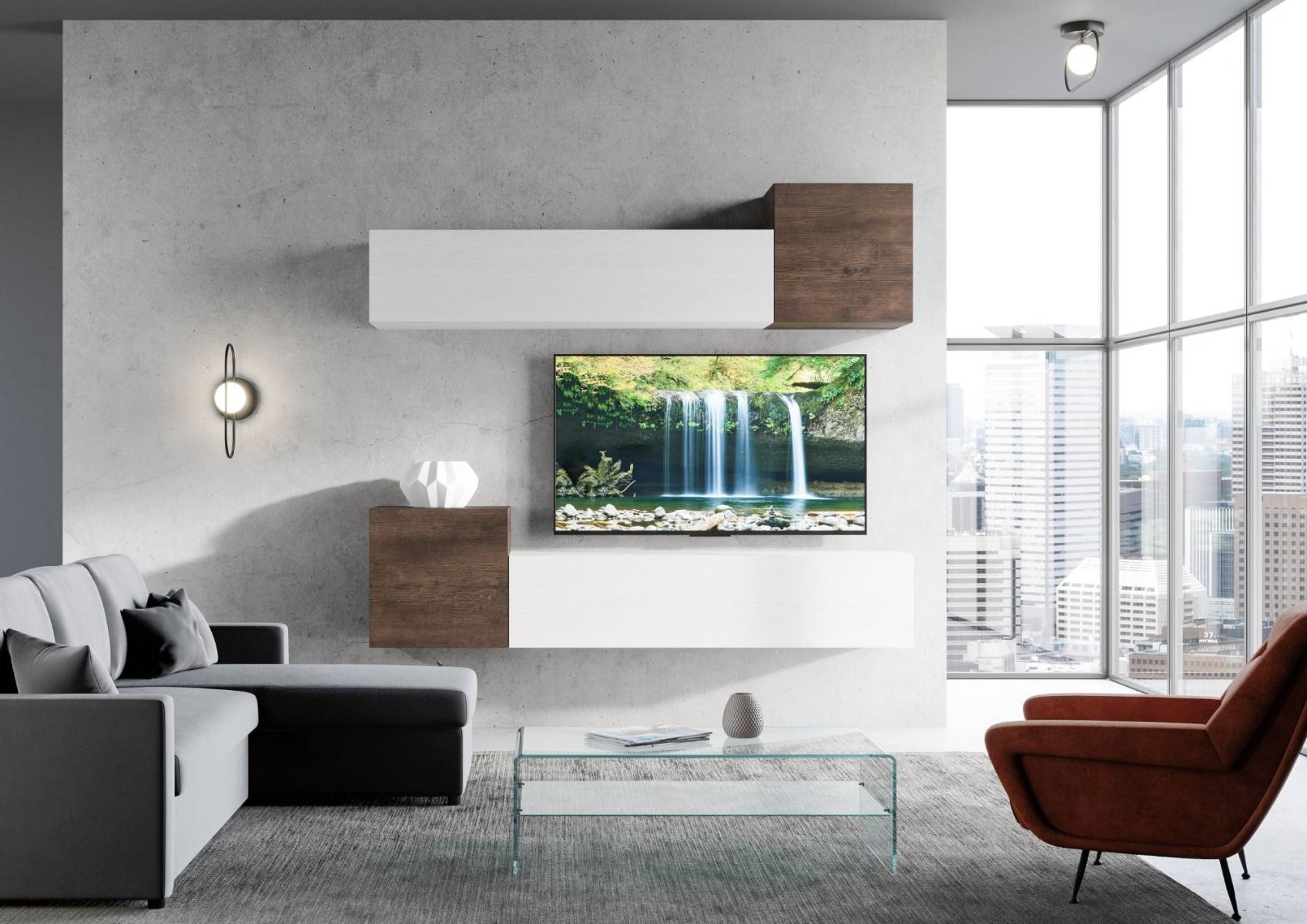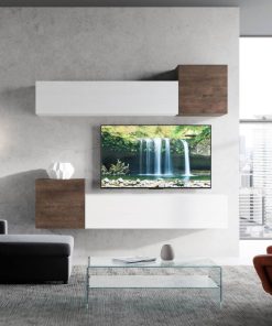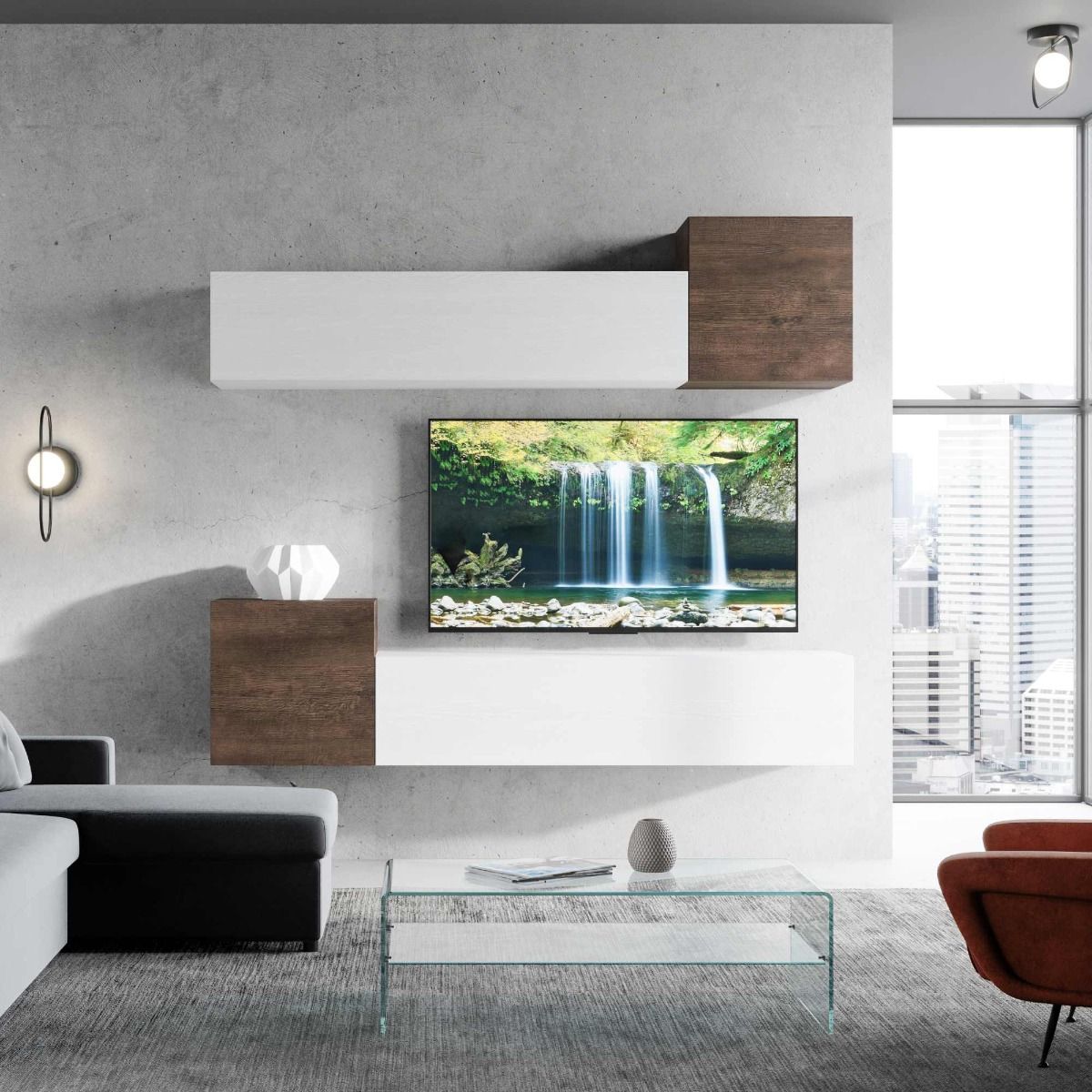 Parete attrezzata moderna sospesa in legno noce e bianco