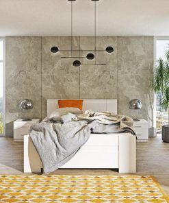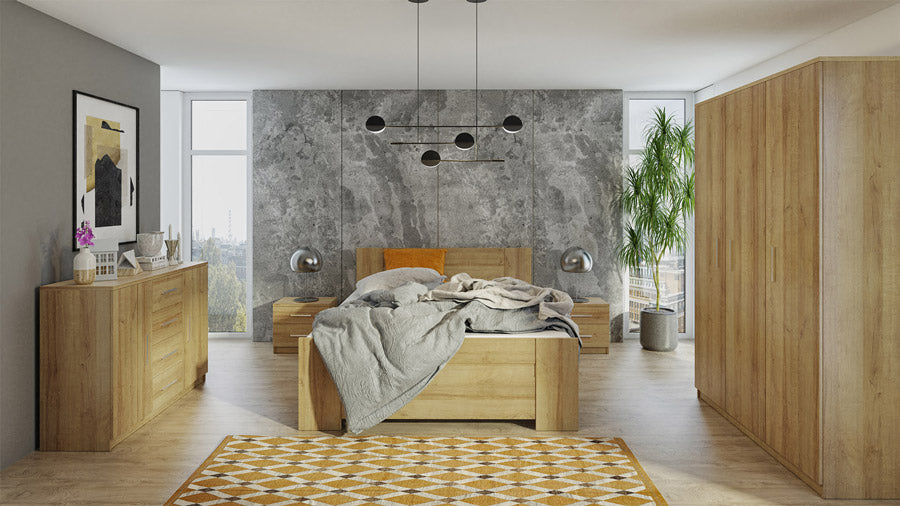 Luliana è una camera completa matrimoniale dotata di letto da cm 160 completo di doghe e di contenitore, armadio 3 ante da cm 135, 2 comodini e mobile. La nostra camera moderna è indicata da chi apprezza lo stile basic e il legno naturale. Infatti, sono disponibili due finiture del legno: oak golden per chi preferisce una tonalità più calda, oppure oak monastery per un colore più scuro. Oppure potrai scegliere la camera interamente di colore bianco opaco.