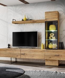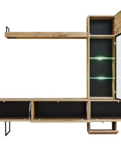 Lupie – Parete moderna stile industriale con porta tv e vetrina in legno quercia
