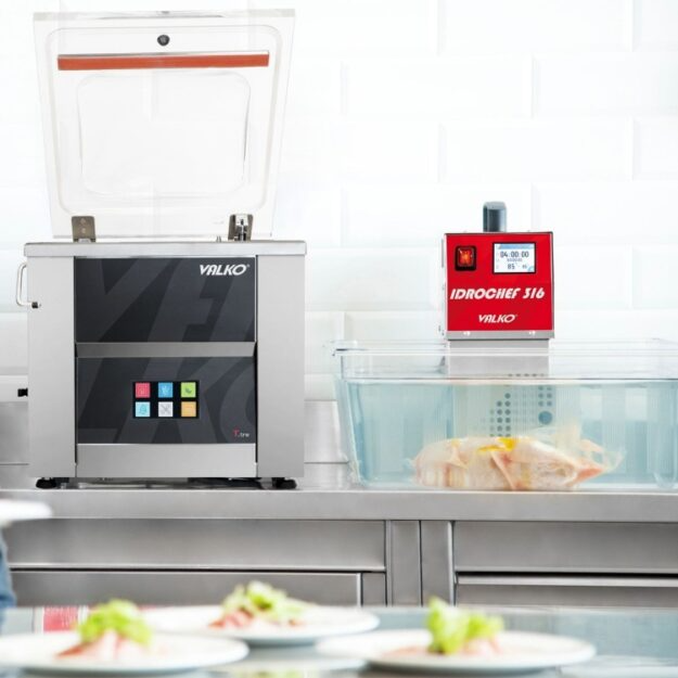La macchina sottovuoto T.QUATTRO 25/415, parte della linea T di VALKO, è un’attrezzatura essenziale per la ristorazione professionale. Questo modello da banco è dotato di una barra saldante da 415 mm e un touch screen interattivo da 4,3 pollici, resistente a graffi e impermeabile, per un controllo intuitivo. Permette di confezionare alimenti con un vuoto fino al 99%, e offre una funzione extra vuoto per un’ulteriore conservazione. Include programmi specifici per liquidi, sgasatura, marinatura e atmosfera modificata (ATM), ampliando le possibilità di utilizzo. Il Soft-Air, sia elettronico che manuale, garantisce la delicatezza nel confezionamento di prodotti fragili. La deumidificazione e il sensore di vuoto assoluto assicurano prestazioni ottimali. La sicurezza è prioritaria, con un countdown per la manutenzione programmata. Pompa da 25 metri cubi.