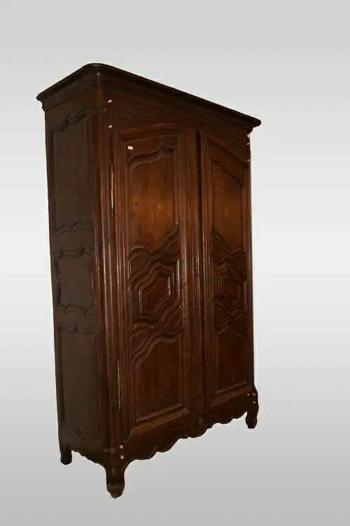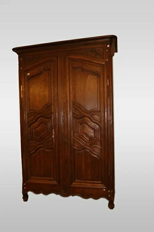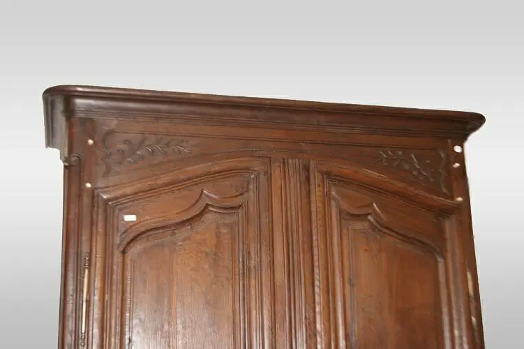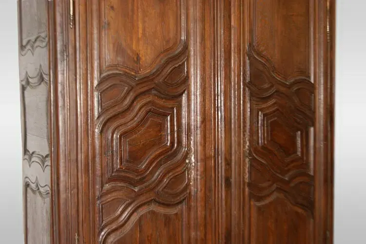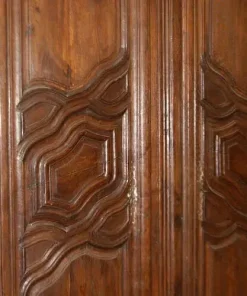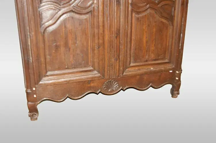 Maestoso armadio francese della seconda metà del 1700, stile Provenzale, in legno di castagno. Presenta motivi di intaglio su tutta la superficie, piedini a ricciolo.