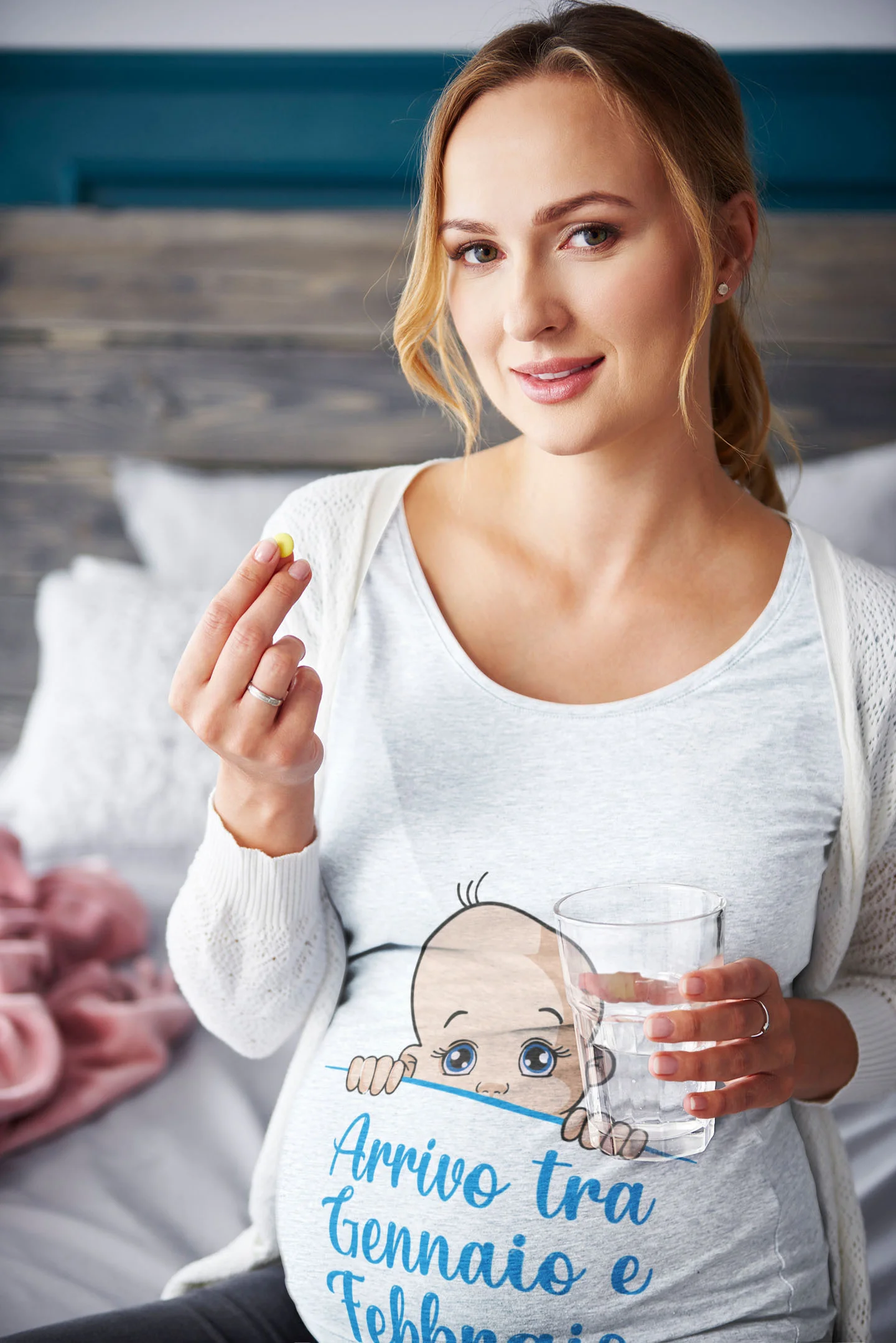 Maglietta divertente Donna T-Shirt ideale per il premaman Regalo Maglietta ideale come regalo per una futura mamma, oppure come regalo di compleanno, festa del papà, festa dei nonni, Natale, SanValentino, anniversario, t-shirt divertente.