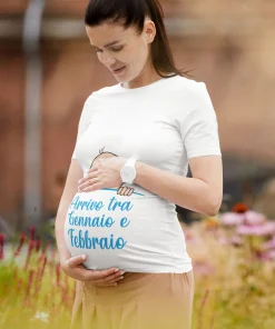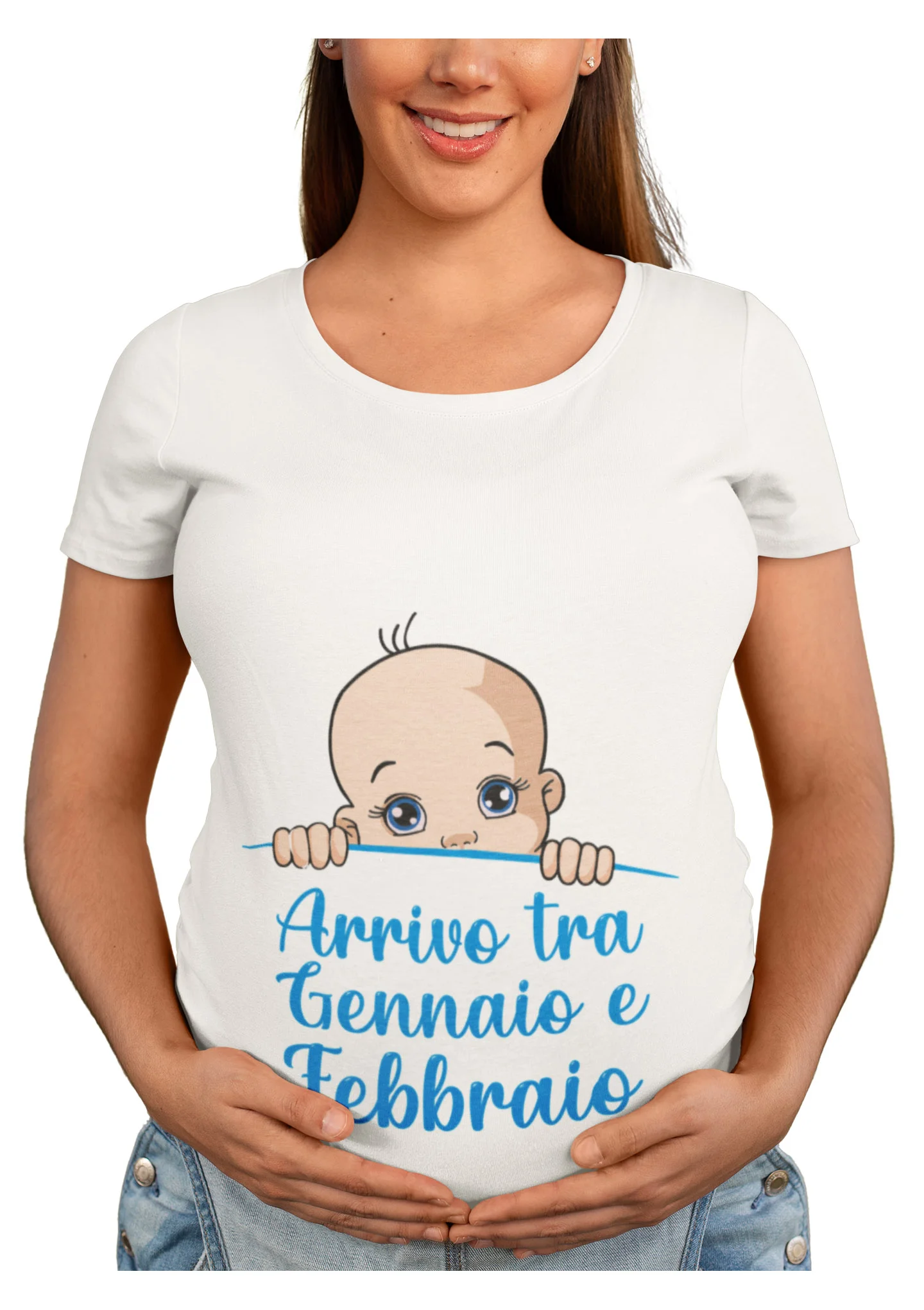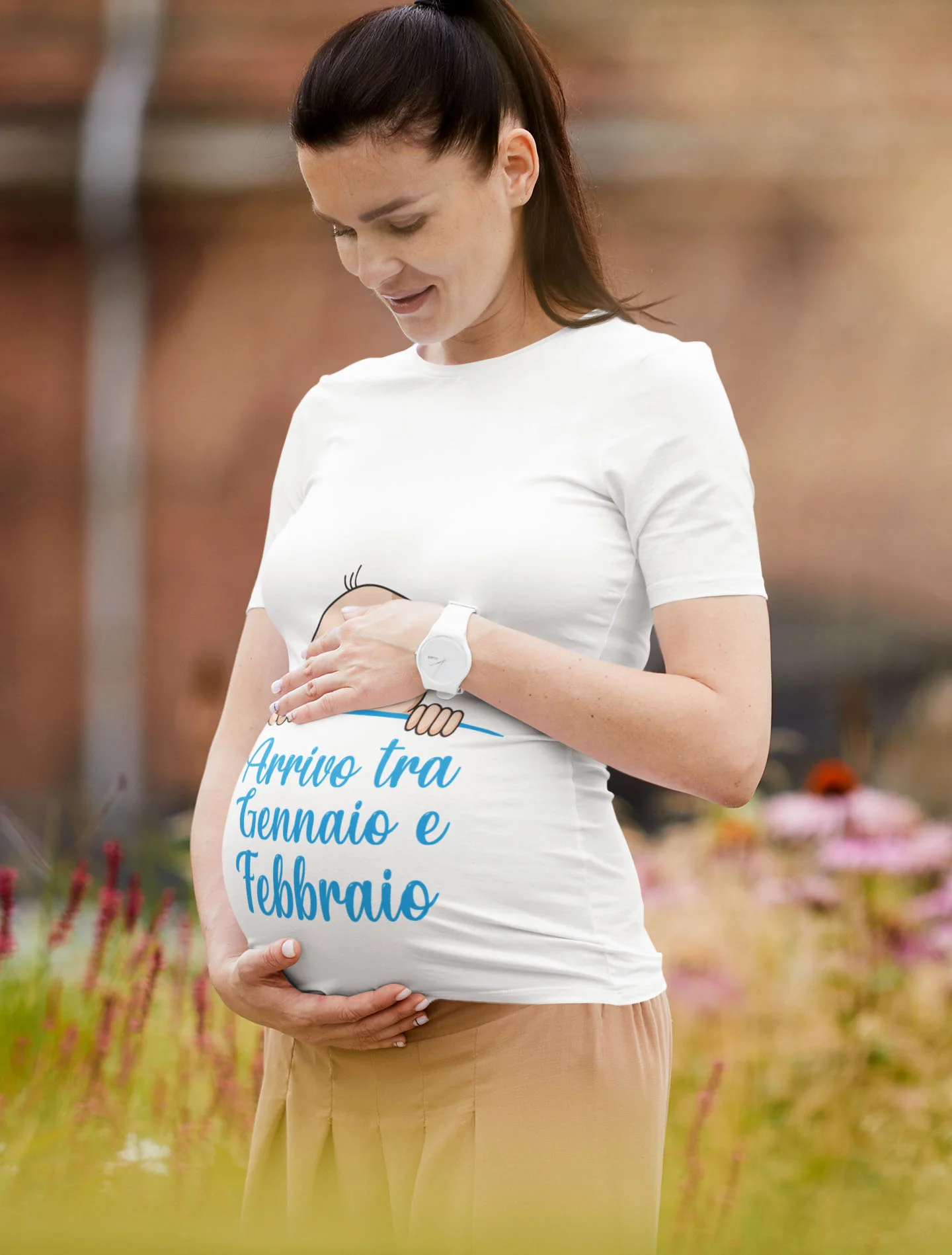 Maglietta Ideale per Il Premaman PERSONALIZZABILE Arrivo Tra e (seleziona mese di nascita) Idea regalo nascita