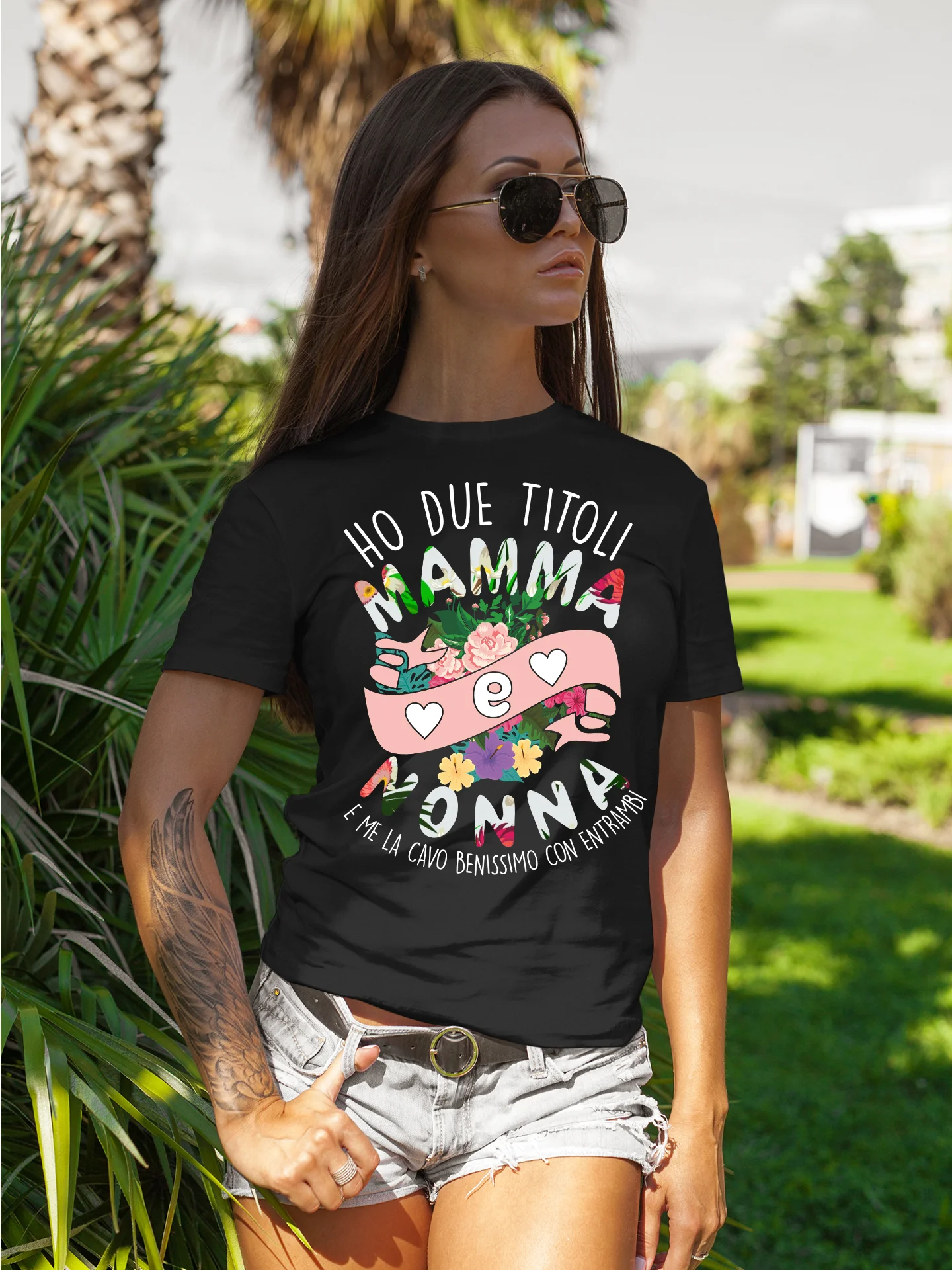 Maglietta Mamma T-Shirt Festa della Mamma Ho due titoli Mamma e Nonna, me la cavo benissimo con entrambi Idea Regalo Mamma