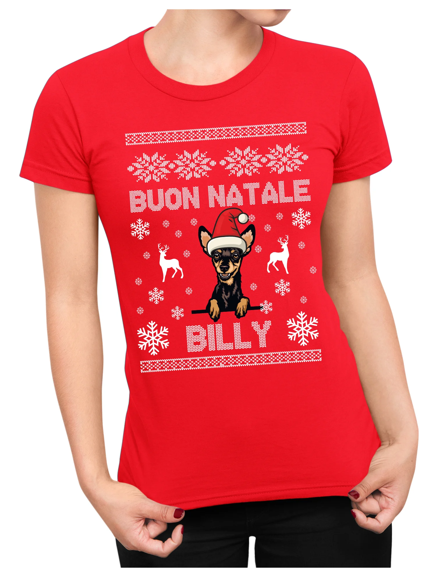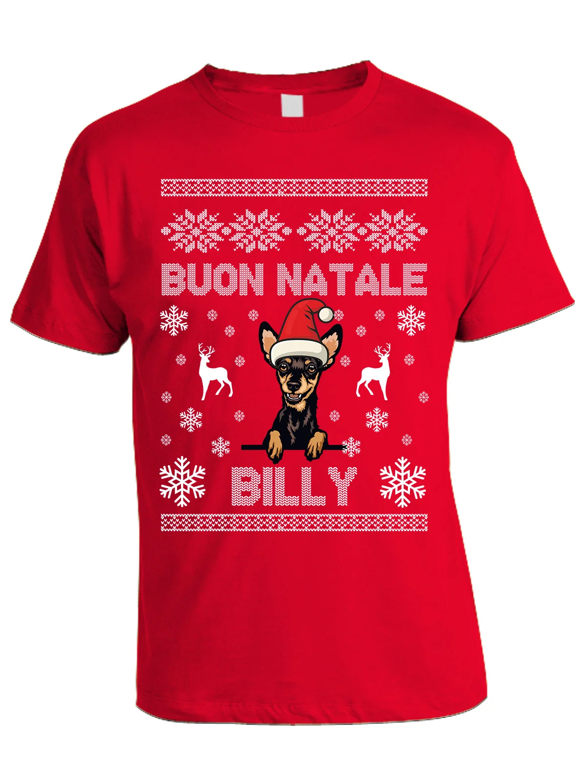Maglietta Natale PERSONALIZZABILE Pincher Pinscher Uomo Donna Buon Natale Personalizza con nome del tuo cane Dog Christmas