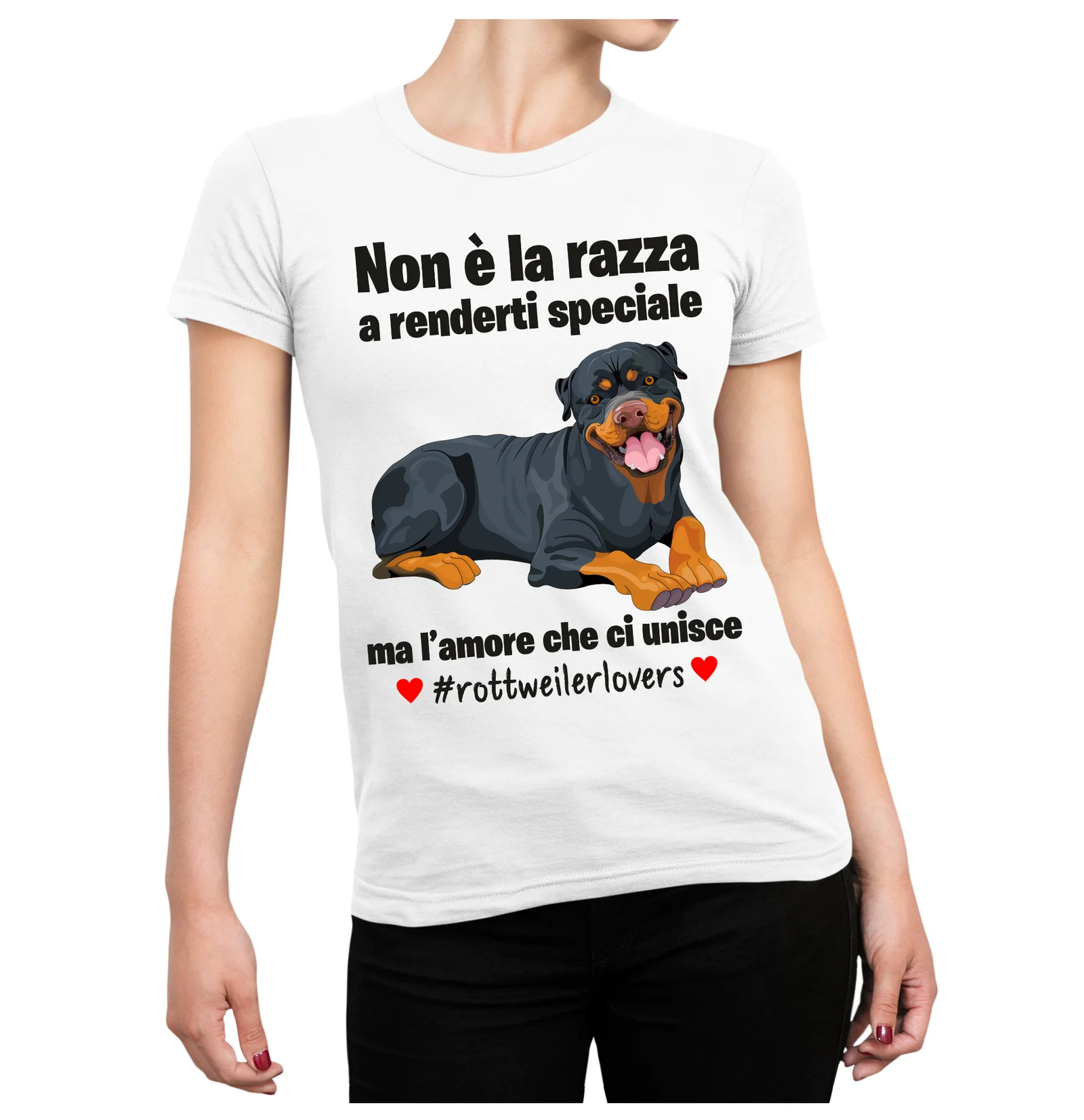 Maglietta Rottweiler Donna Non è la razza che conta ma l’amore che ci unisce T-Shirt Donna divertenti