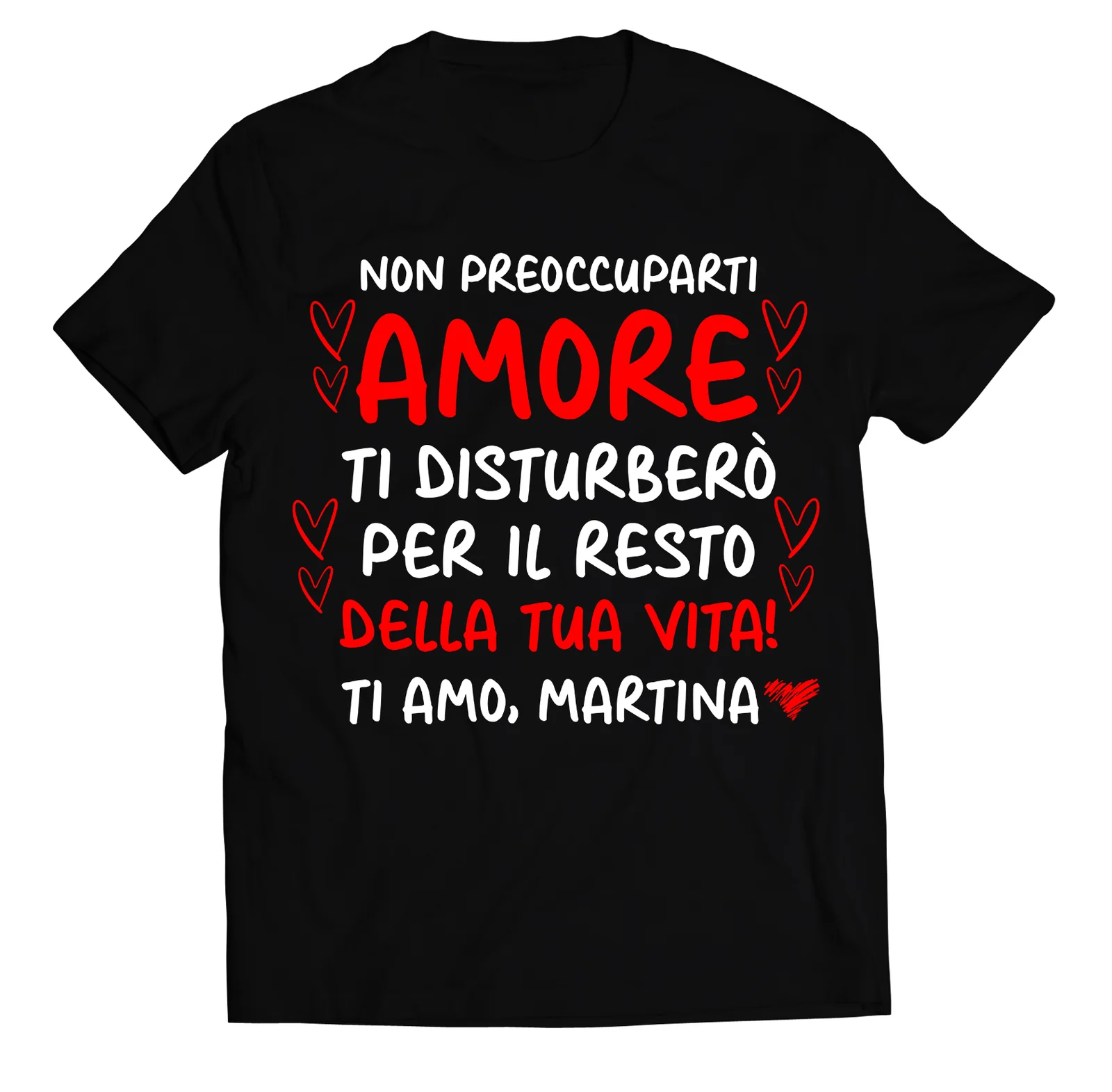 Maglietta SanValentino PERSONALIZZABILE CON NOME T-Shirt Innamorati Non preccuparti amore, ti disturberò per il resto della tua vita Ti Amo – Love – Amore – Regalo
