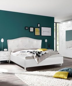 Camera matrimoniale completa Magnolia, composta da letto da cm 160, 2 comodini, comò e armadio scorrevole, tutti realizzati in legno colore bianco, in grado di realizzare un arredamento dall’eleganza ineguagliabile. La raffinatezza e la signorilità di questa camera moderna Magnolia sfrutta decorazioni rococò, con disegni floreali e cornici serigrafati sul frontale dei mobili. Il maestoso letto classico è prodotto in ecopelle colore bianco con elegantissima testiera sagomata e rivestita con lavorazione capitonnè.