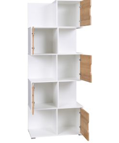 Mobile libreria composta da 5 vani a giorni e 5 ante, disposte in maniera alternata che regala un aspetto dinamico e uno stile unico e stiloso. Realizzata in legno con struttura bianco opaco, le 5 ante sono contrastate dalla finitura naturale del legno.