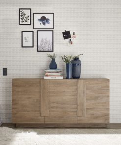 Madia in legno con 3 ante Marinella, piacente grazie allo stile essenziale e asciutto che mette in risalto la singolare finitura del legno, ideata per creare un arredamento caldo e accogliente. La nostra credenza Marinella si contraddistingue per le maniglie lunghe dalla forma rettangolare, che connota questo modello e accompagna lo stile moderno e offre praticità.